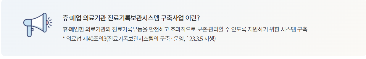 이제는 휴·폐업 병원의 진료기록도 온라인으로 간편하게 열람·발급할 수 있습니다. 진료기록보관시스템 도입으로 병원 폐업 여부와 관계없이 필요한 의료정보를 안전하게 확인하는 방법을 안내해 드리겠습니다.